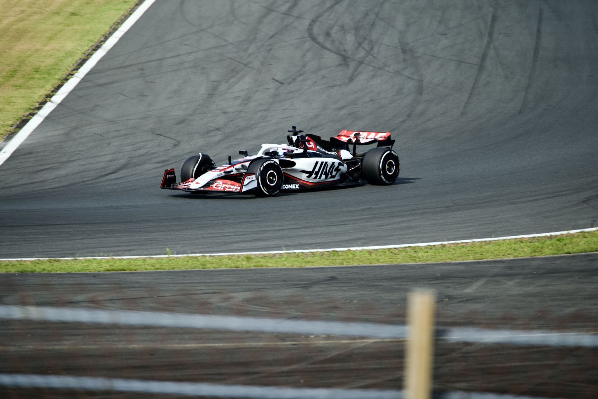 ホームストレートを走ってくるHAAS F1マシンを見た最初の印象は、「現代F1マシンは、ずいぶんでかいんだなあ・・・」