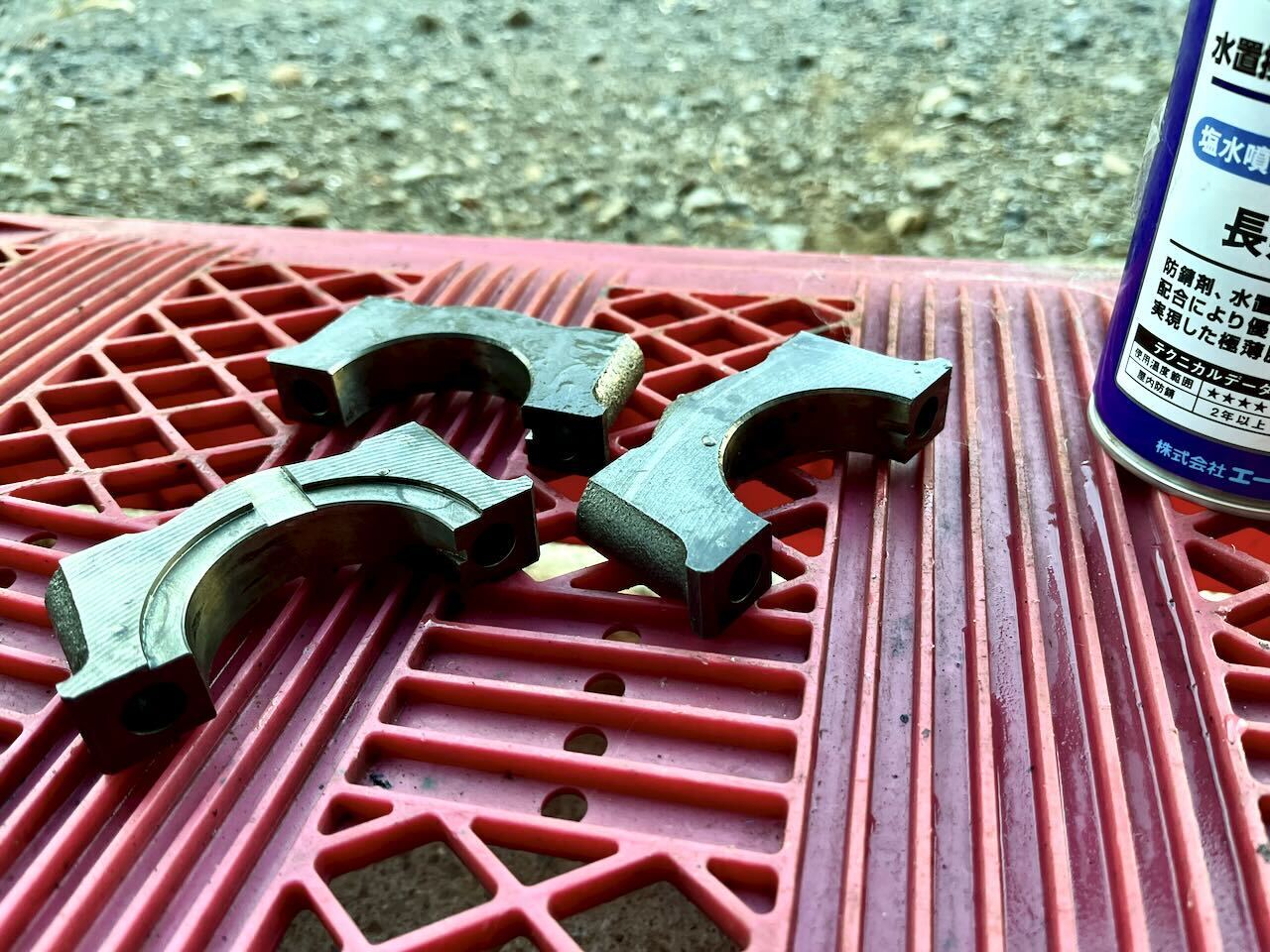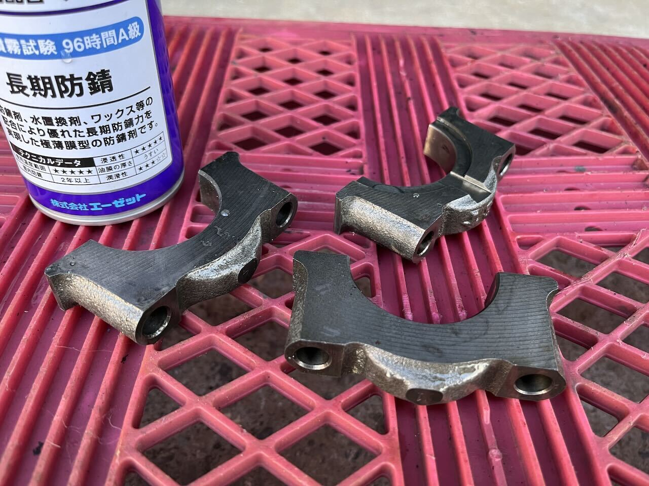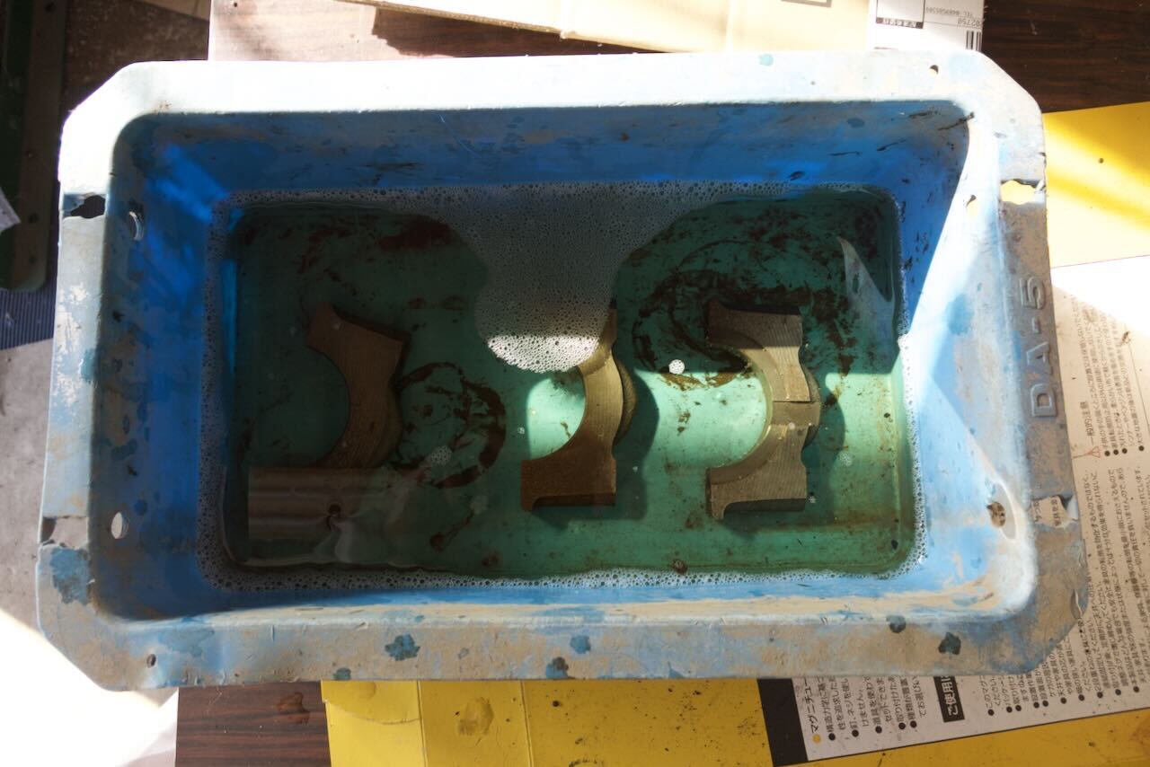 酸を使わない錆び取り剤を使ってベアリングキャップの錆び取りを行いました