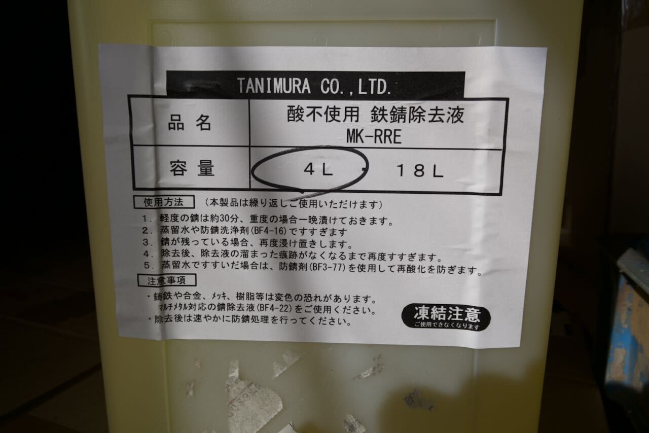 いろいろ探してみると・・・タニムラ株式会社から「酸を使わないサビ除去剤」というものが販売されていました。